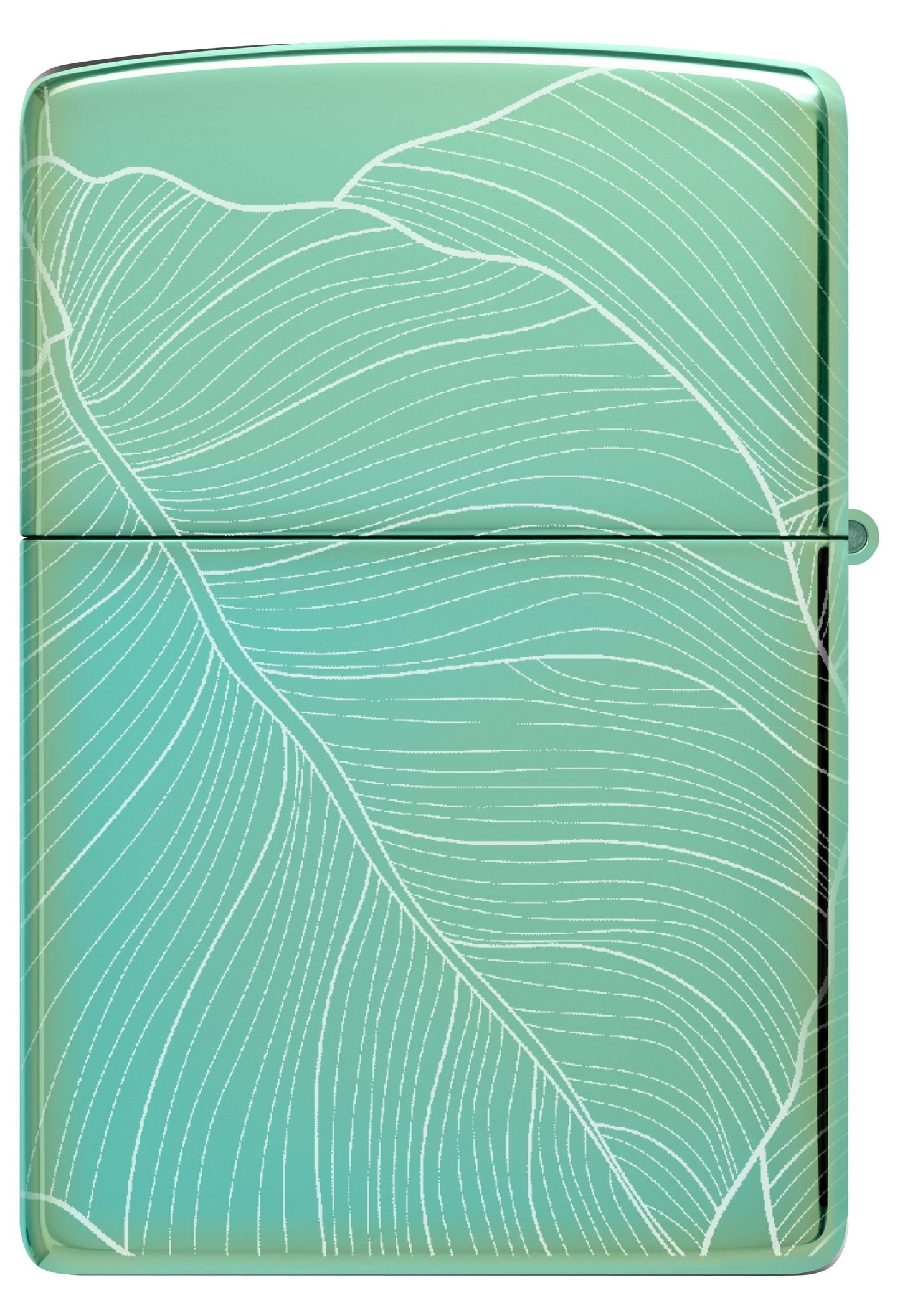 Deze prachtige High Polish Green aansteker is naadloos omgeven door delicate, verfijnde bladeren in een elegant Photo Image 360°-ontwerp.