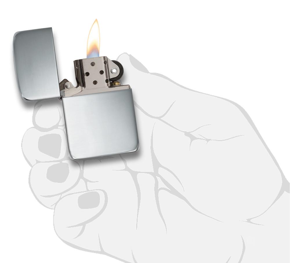 - De hervulbare aansteker gaat een leven lang mee. Werkt het best met de echte Zippo-premium aanstekerbenzine, vuursteentje en lont.