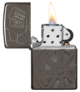 Deze Armor® Black Ice® aansteker heeft een diep ingesneden filmspoel, terwijl de bioscoopkaartjes met een laser zijn gegraveerd. Deze combinatie van processen creëert dit artistieke ontwerp dat perfect is voor elke filmliefhebber. Wordt geleverd in een geschenkdoos. Vullen met Zippo-aanstekervloeistof voor optimale prestaties.