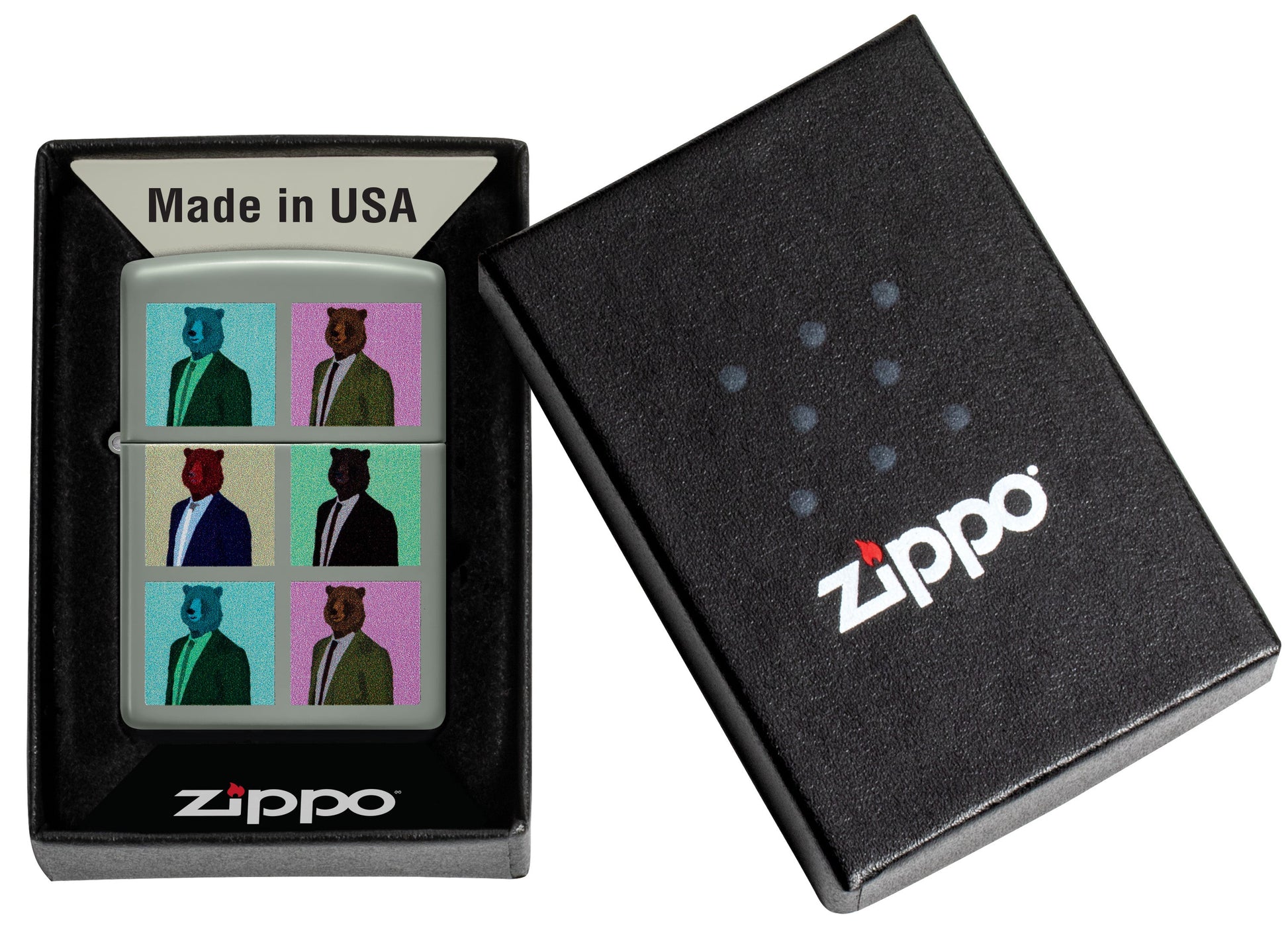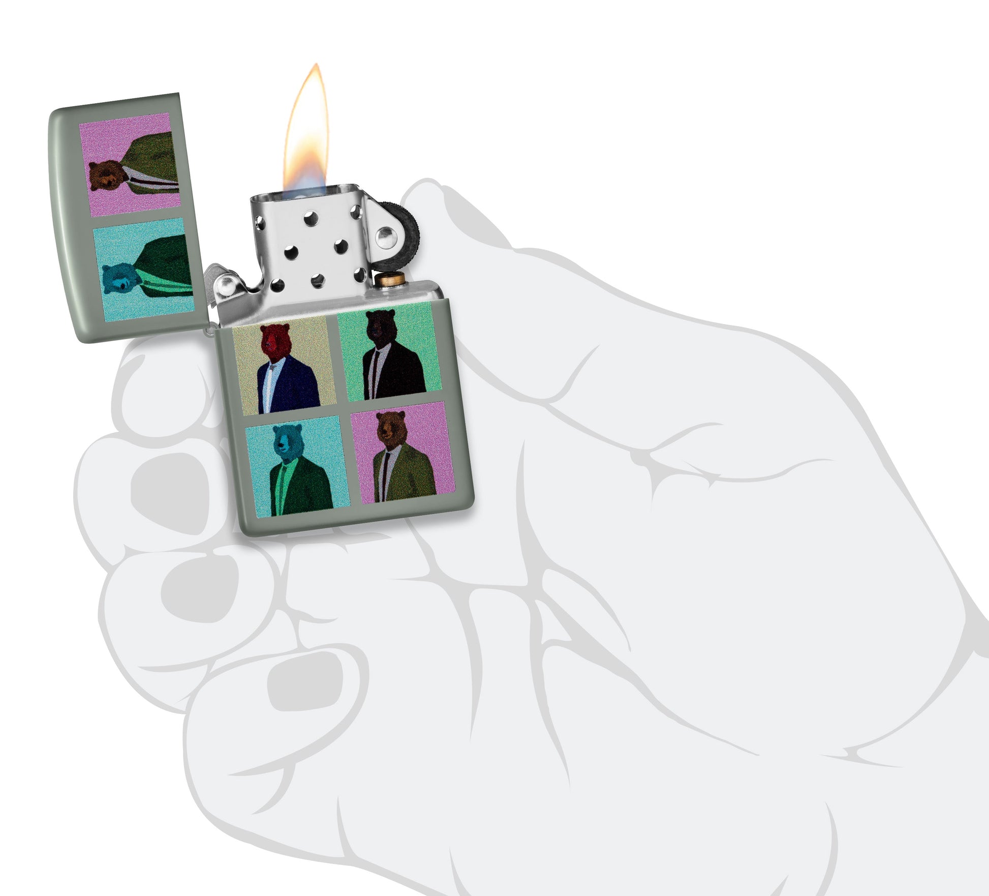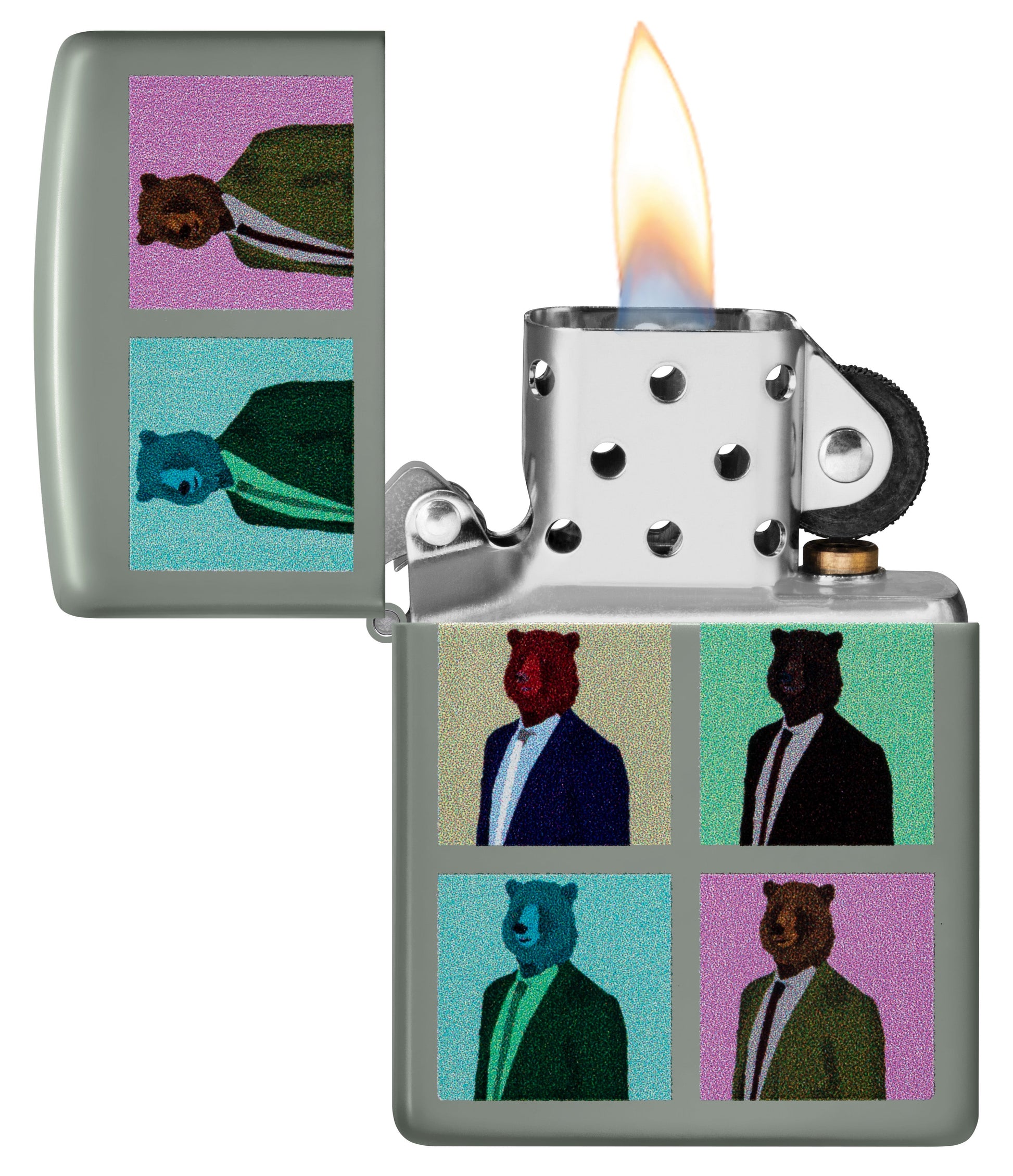 Le design Bear est un briquet impressionnant qui capture la beauté majestueuse du monde des ours. Avec sa finition Flat Grey distinctive et son motif coloré d'ours, il est vraiment remarquable.