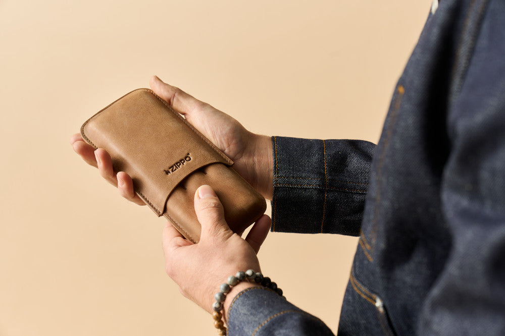 Bewaar je favoriete sigaren veilig en stijlvol in dit Vintage sigarenetui van Zippo. Dit fraaie etui van echt leer met het subtiel afgebeelde Zippo-logo biedt plaats voor drie sigaren en heeft een tijdloze, ontspannen look.