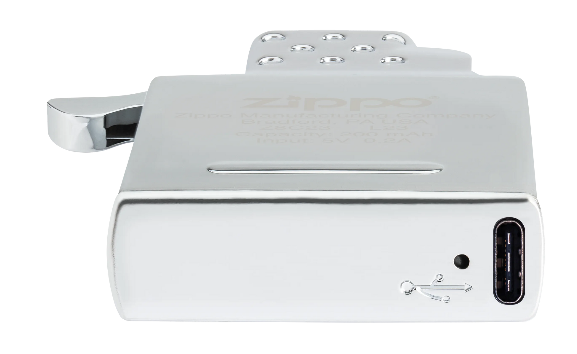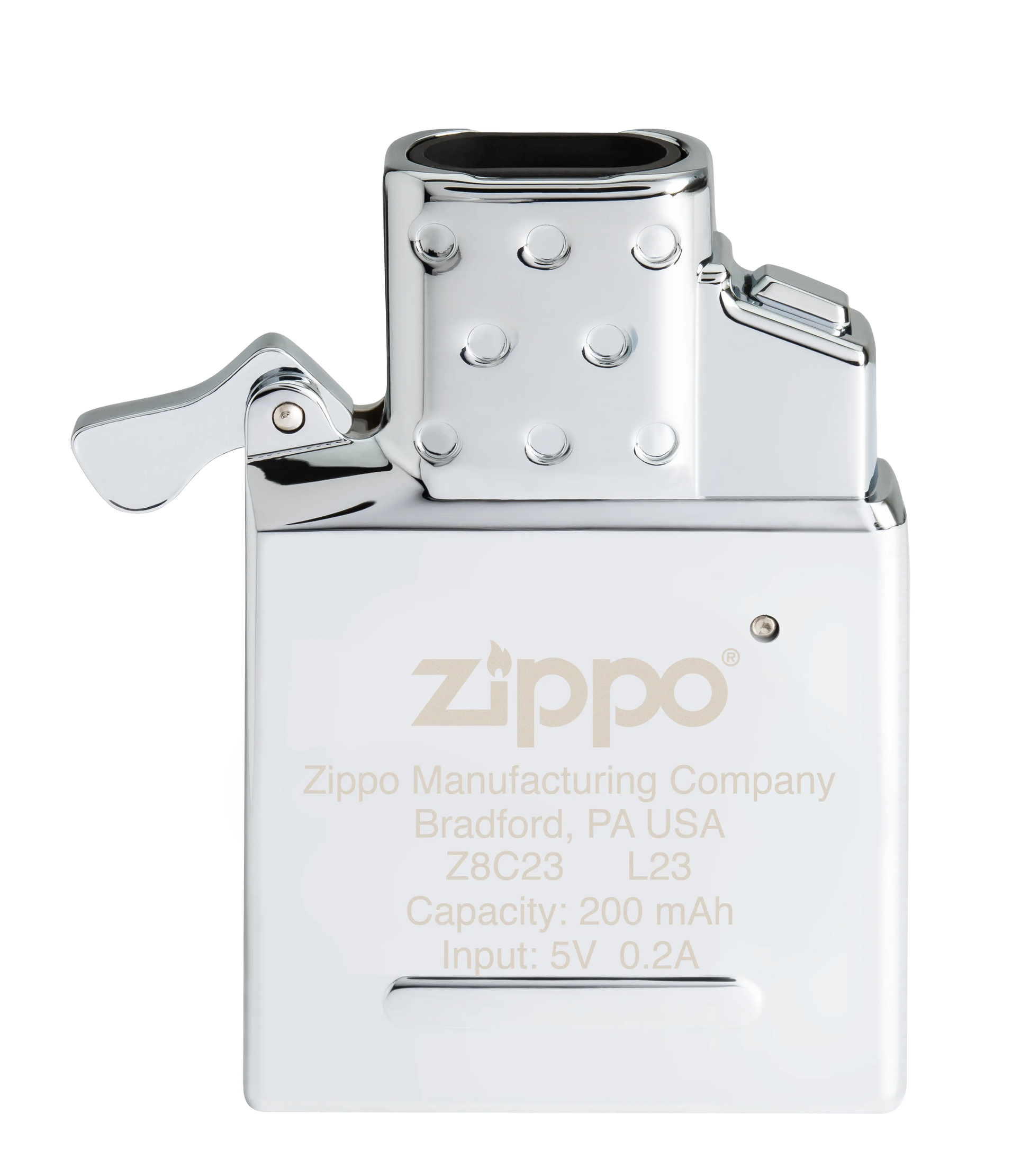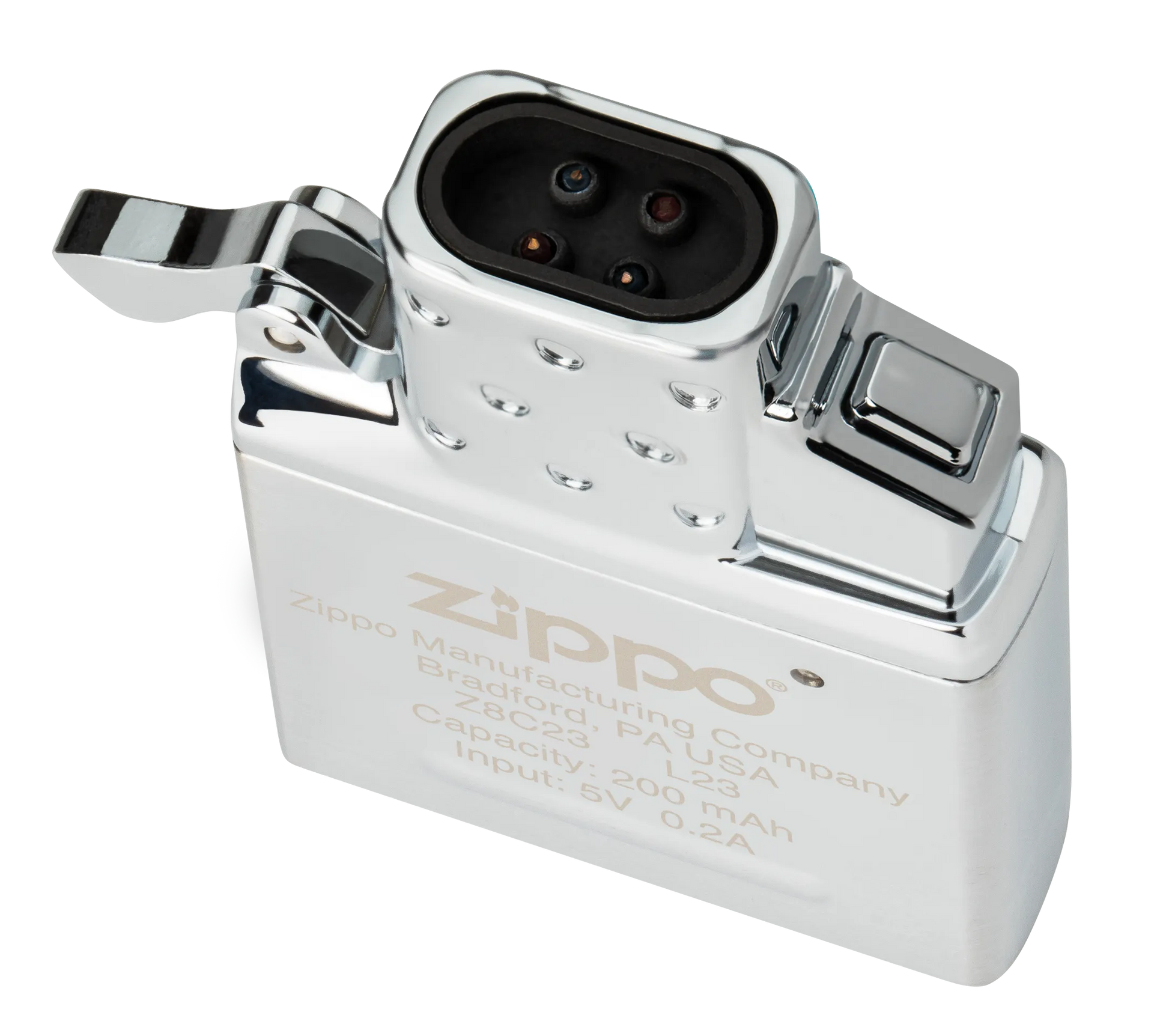 Breid je aanpassingsproces nog een stap uit met jouw keuze van het vlamtype. De Double Arc Rechargeable Lighter Insert heeft twee krachtige plasmabundels die je met een druk op de knop ontsteekt, voor een vlamloze en windbestendige aansteker die je gemakkelijk weer oplaadt met de meegeleverde USB-C-kabel. Alle Zippo inzetstukken voor aanstekers zijn zo ontworpen dat ze perfect passen in elke klassieke Zippo aanstekerhouder* (afzonderlijke verkocht).
