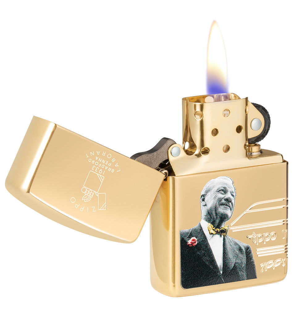 Ons Lustre-proces is gebruikt om zowel het persoonlijke goedkeuringszegel van Blaisdell op de klep van de aansteker als de ontwikkeling van het datumcodesysteem van Zippo (het onschatbare aansteker voor verzamelaars over de hele wereld) af te beelden op de achterkant van de aansteker. Elke aansteker is opeenvolgend genummerd, wordt geleverd met een goudkleurig inzetstuk en heeft een herdenkingsstempel aan de onderkant.