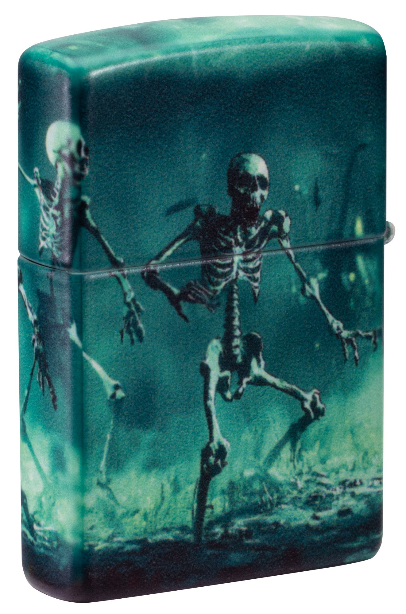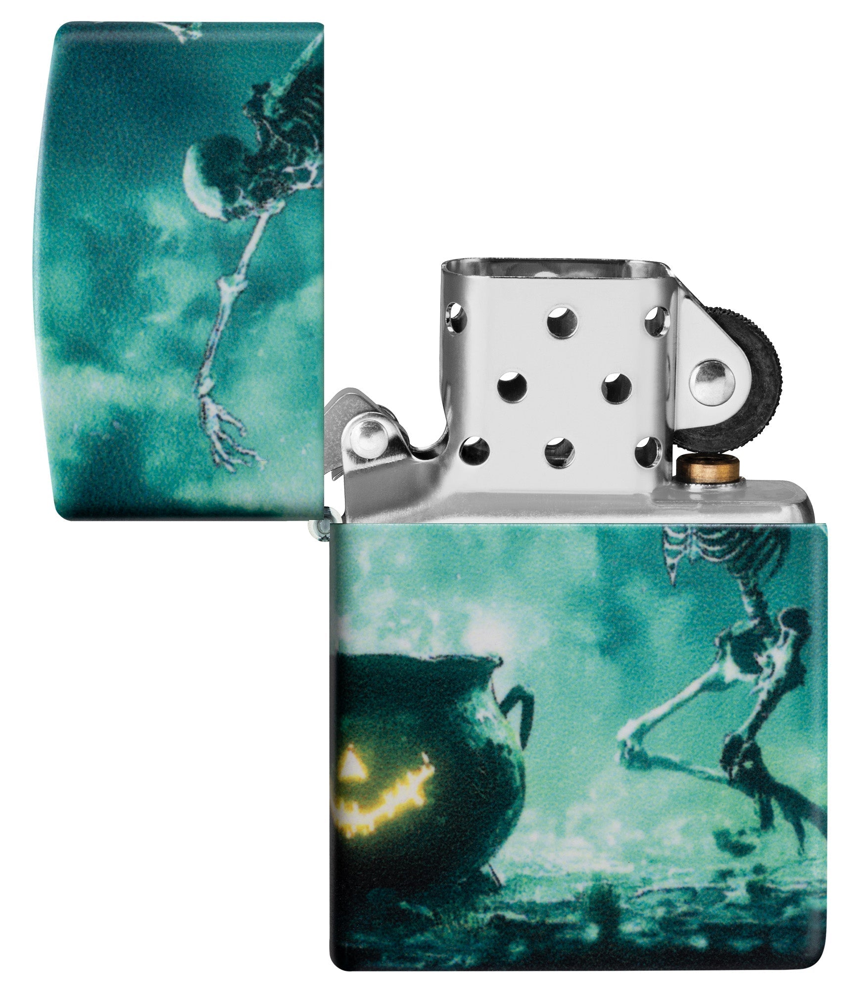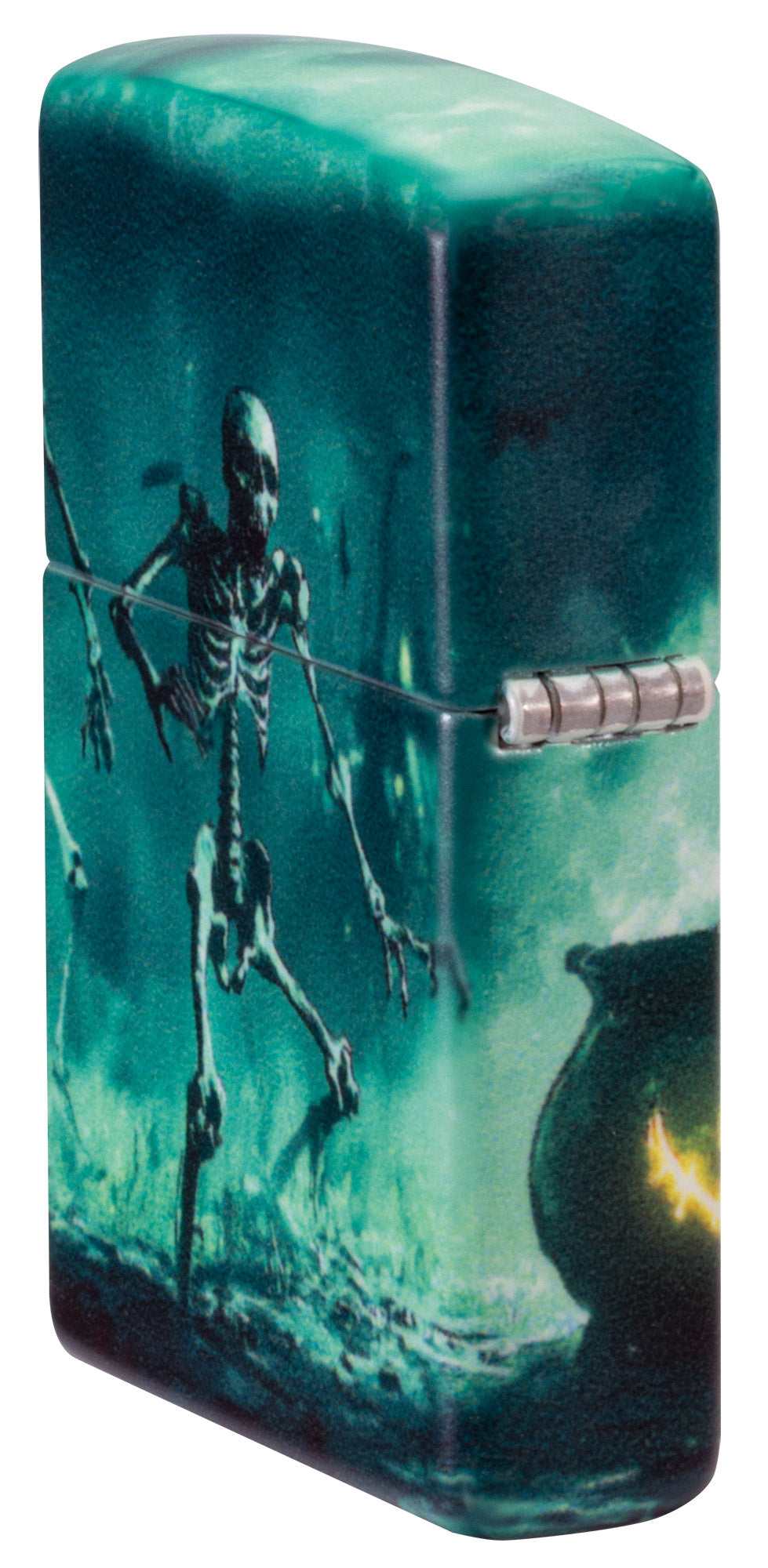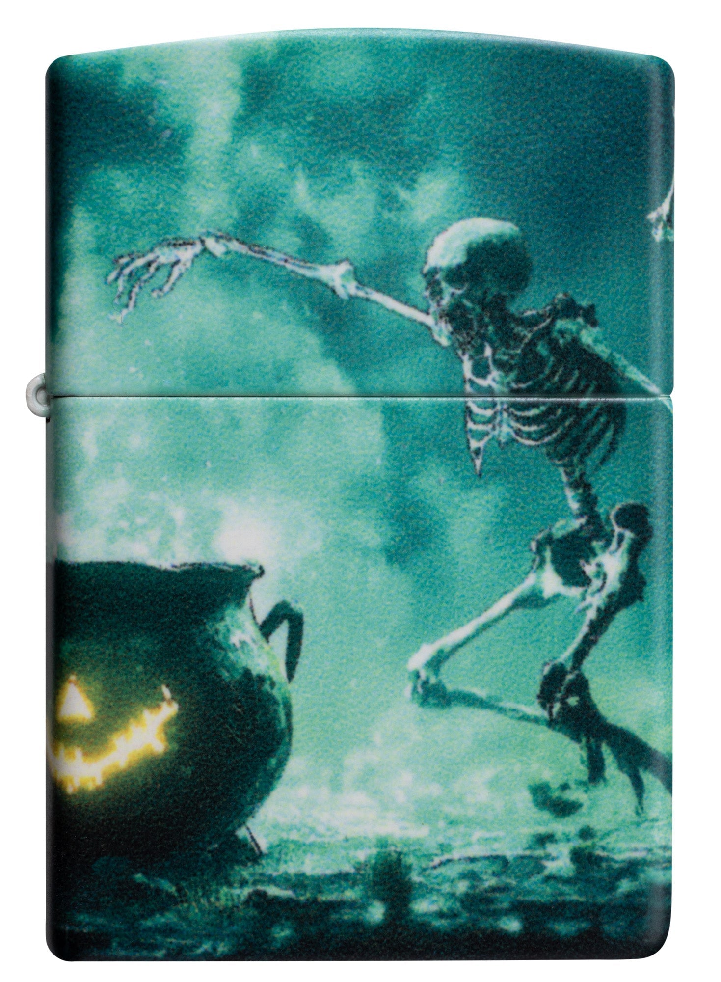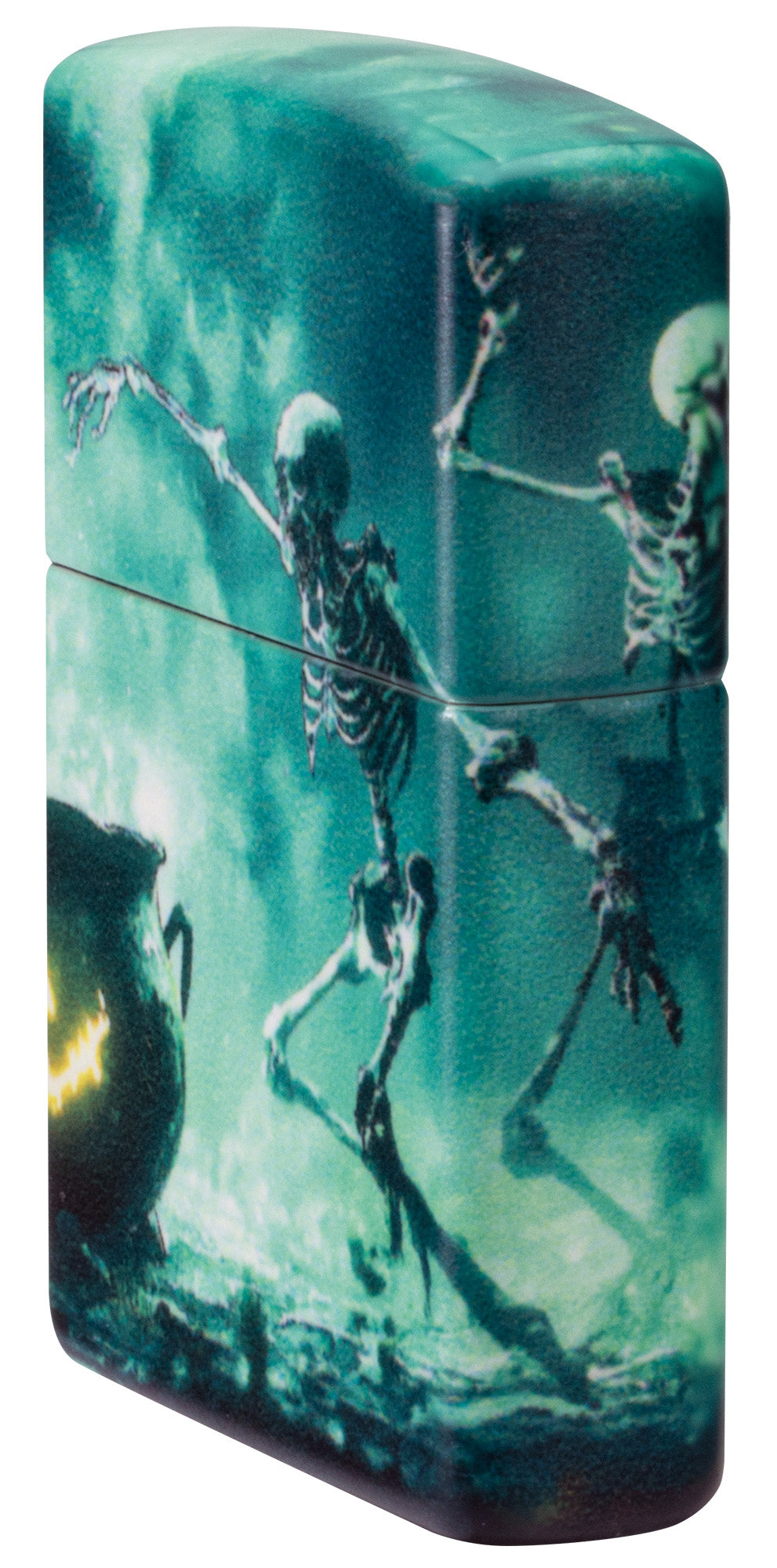 Een groep skeletten danst rond een borrelende ketel op deze klassieke 540 Color-aansteker met een verrukkelijk griezelig ontwerp dat voor extra aantrekkingskracht met onze speciale Glow-in-the-Dark-afwerking behandeld is.