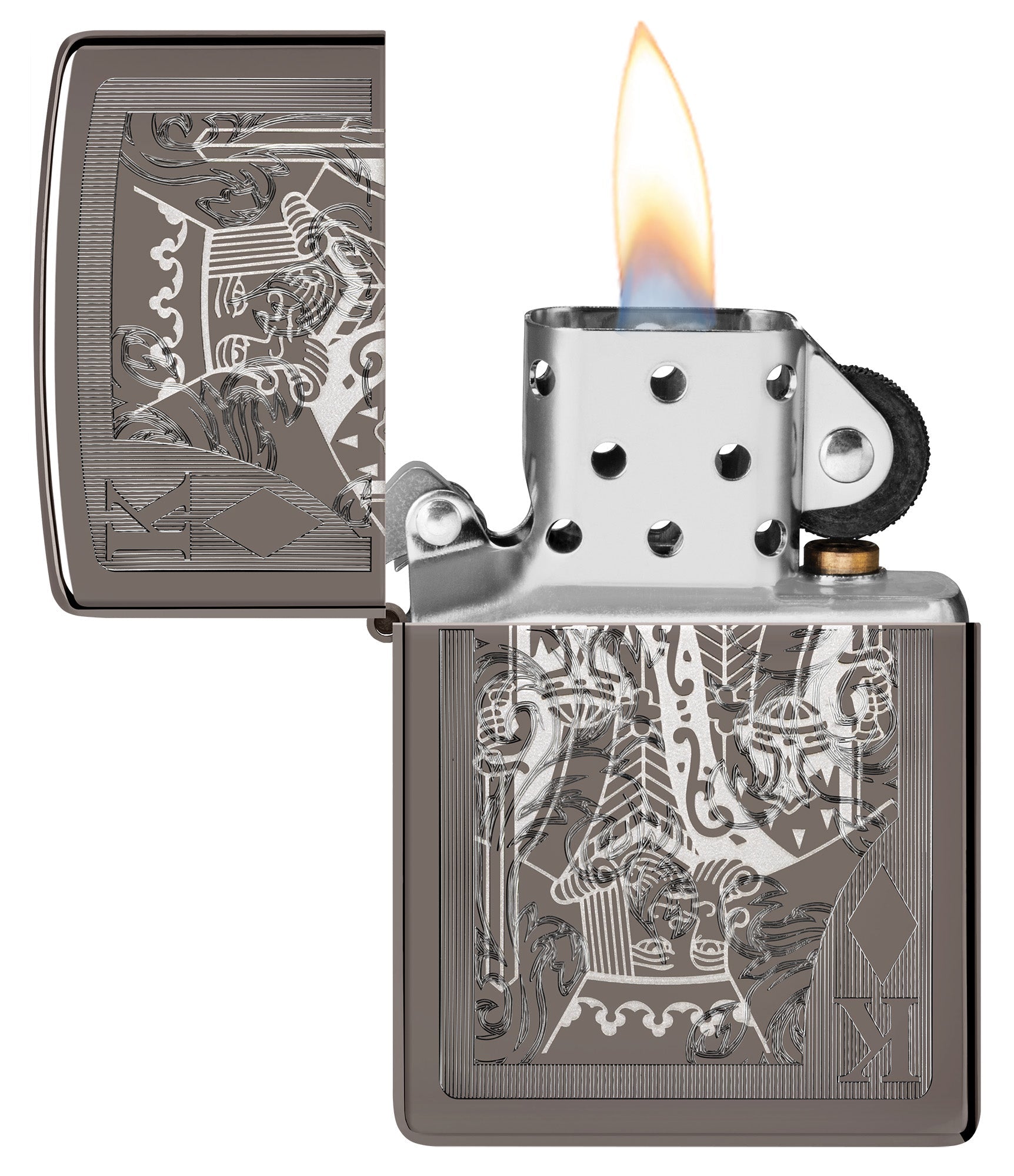 Laat deze klassieke Black Ice®-aansteker je collectie domineren. Op het gladde oppervlak is een complex ruitpatroon gegraveerd met behulp van onze processen voor auto- en lasergravure voor luxueuze diepte en contrast.