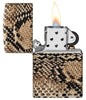 De slang is een symbool van bescherming tegen ongeluk en ziekte, maar ook een symbool van wijsheid, geluk, kracht en verandering. Een in het oog springend slangenleerontwerp, het gedetailleerde 540 Color Image procédé omhult de witte matte aansteker.