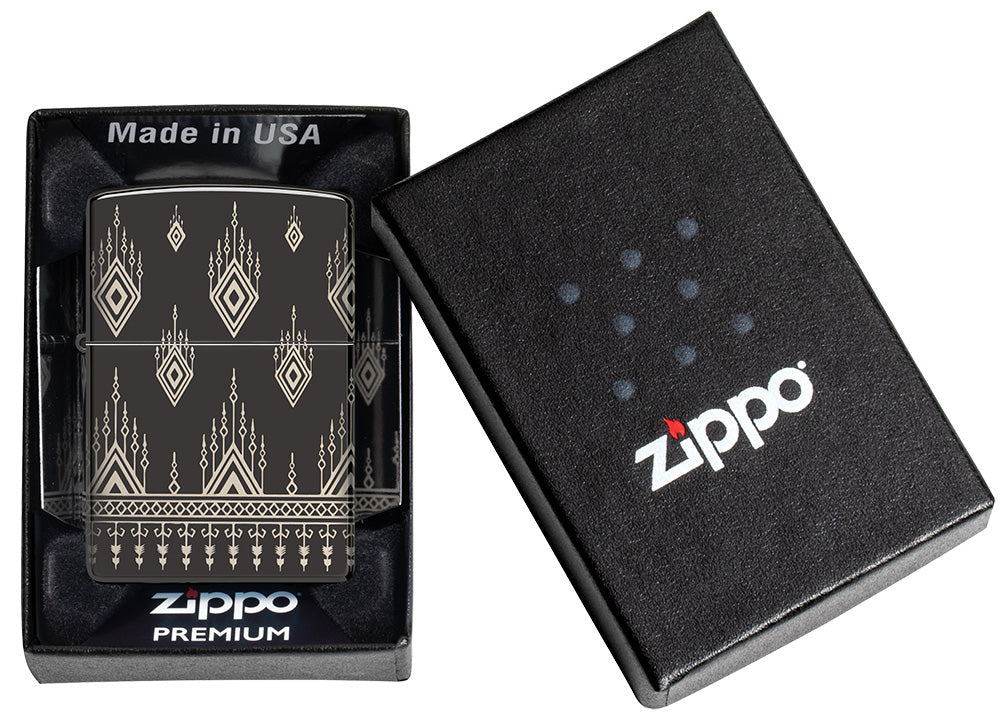 Het hoogglans gepolijste zwarte oppervlak geeft de aansteker een nobele en aantrekkelijke esthetiek. Het stammenpatroon dat met de 360° lasergravure op de aansteker is gegraveerd, bevat de essentie van oosters design en geeft de aansteker een vleugje exotisme en verfijning.