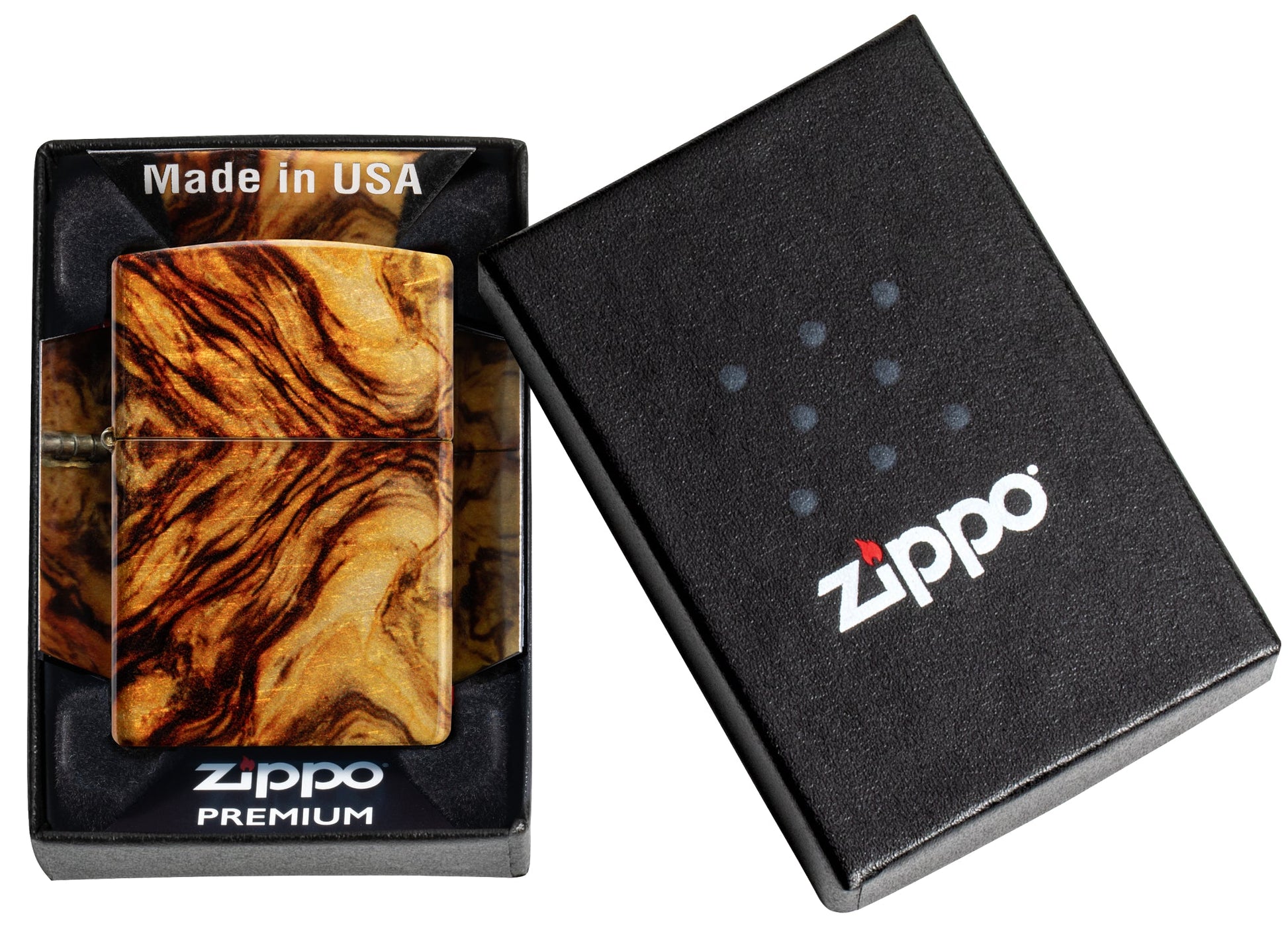 - De hervulbare aansteker gaat een leven lang mee. Werkt het best met de echte Zippo-premium aanstekerbenzine, vuursteentje en lont.