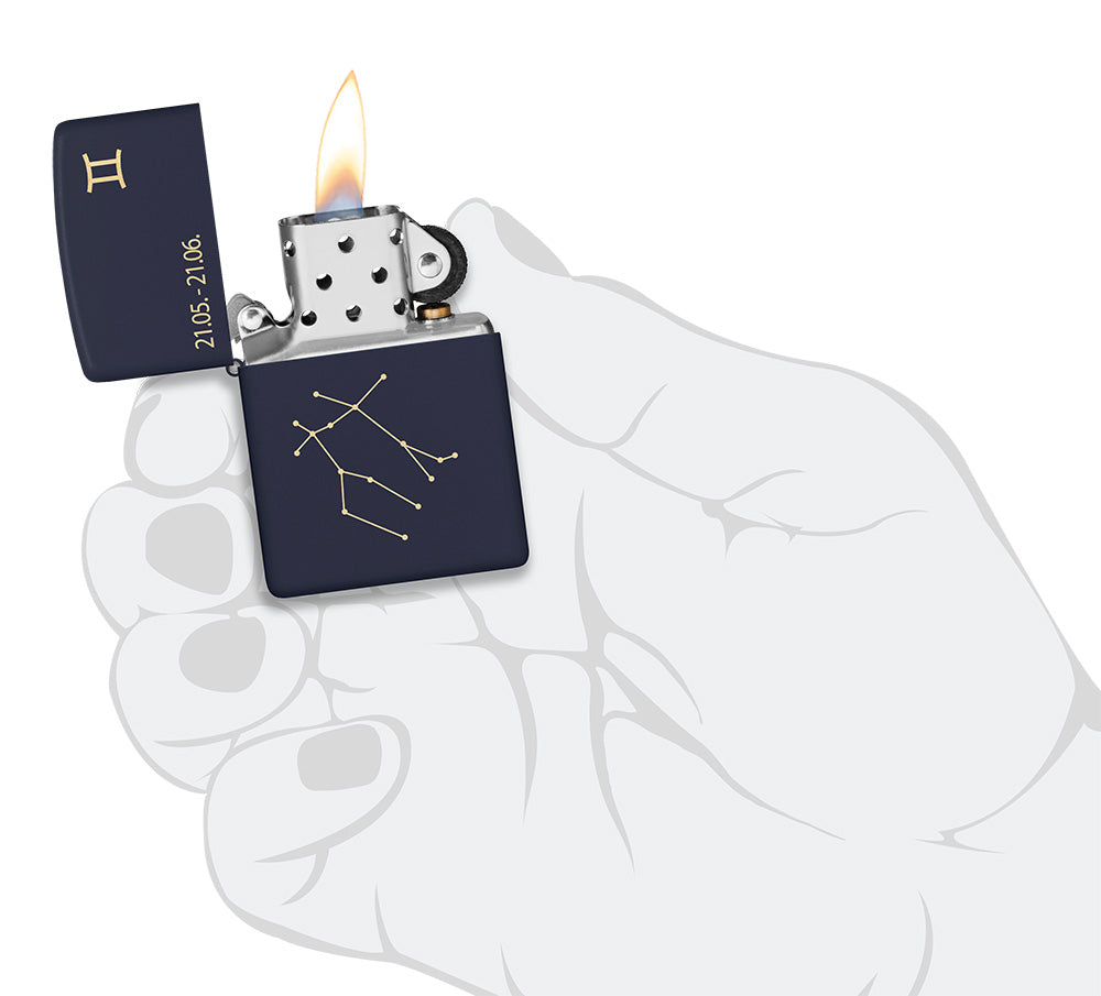 Wie onder het teken van de sociale en nieuwsgierige Tweelingen valt, wordt gehuldigd met deze Navy Matte aansteker.