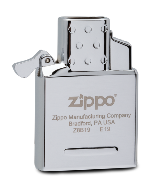 Pas je Zippo-aansteker met een nieuwe aanstekerinzet aan. Kies uit een enkele of dubbele vlam en een butaangasvlam of vlamboog. De butaaninzet, die onder druk staat, zorgt voor een geruisloze vlam, terwijl de vlamboog een volledig windbestendige vuurbron oplevert, die eenvoudig weer kan worden opgeladen. Past op alle Zippo-cases van normale grootte. Past niet op de Slim of 1935 Replica.